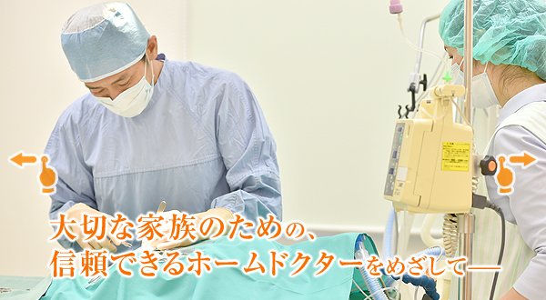 当院では、家族の一員である動物たちが健康で幸せな毎日をおくれるように丁寧な診察と予防医療に力を入れています。また、患者動物それぞれに必要な動物看護ケアを提供しています。ご自宅でのお食事の事や介護の相談やしつけ・飼い方など、お気軽にご相談ください。